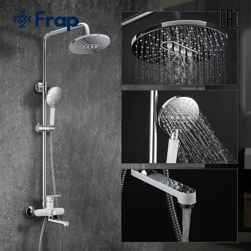Frap — это качественная современная душевая система, высокая функциональность которой позволяет улучшить качество приёма водных процедур. Данное сантехническое оборудование выполнено в оригинальном минималистическом дизайне, что позволяет вписать её в любой интерьер ванного помещения. Корпус данной душевой системы сделан из латуни. Этот материал не вступает в химическую реакцию с водой, а потому изделие всегда будет надёжно защищено от воздействия коррозии. Также латунь является прочным материалом, что минимизирует вред от механических повреждений и повышает срок эксплуатации устройства.