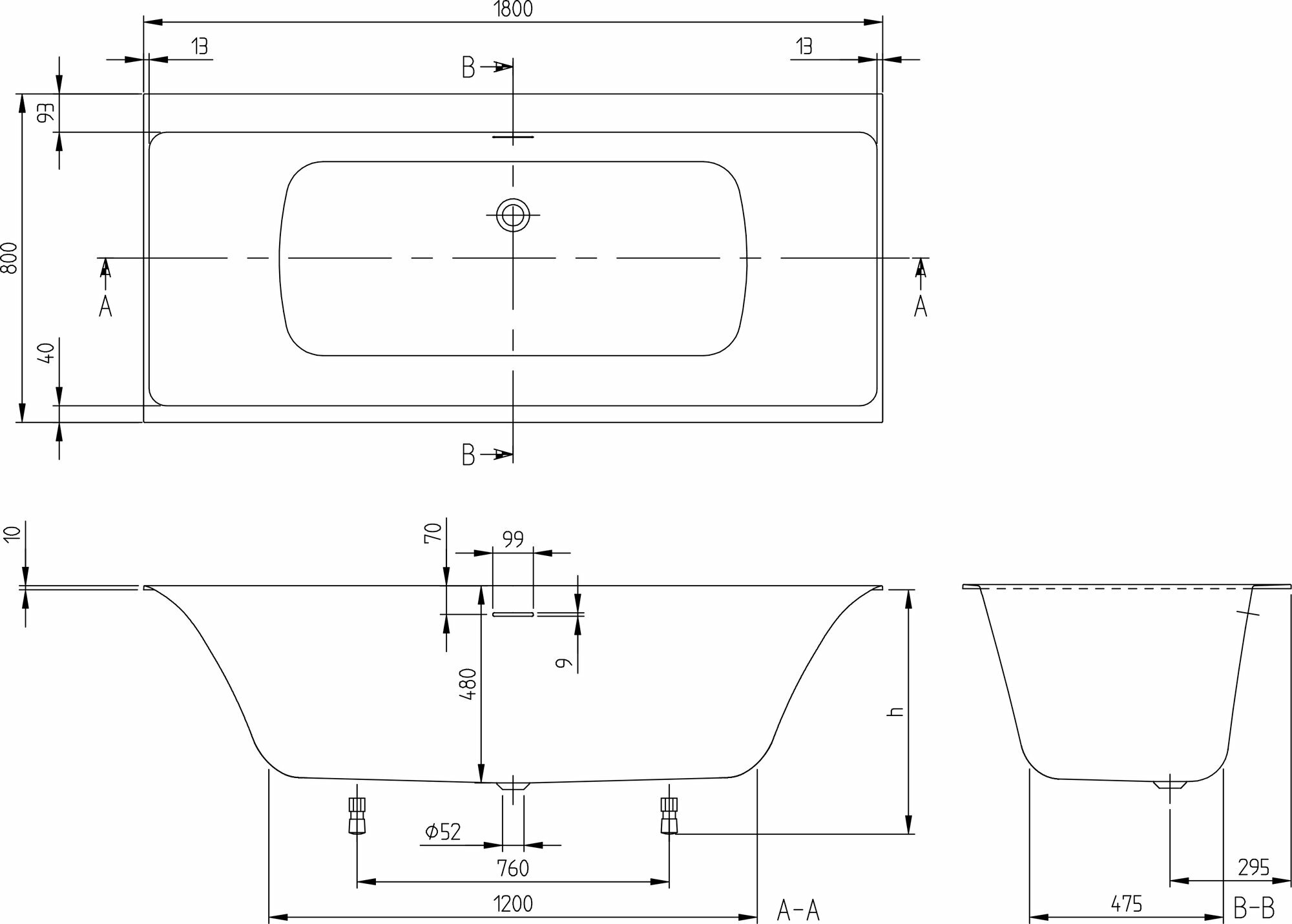 - Расположение слива: в центре