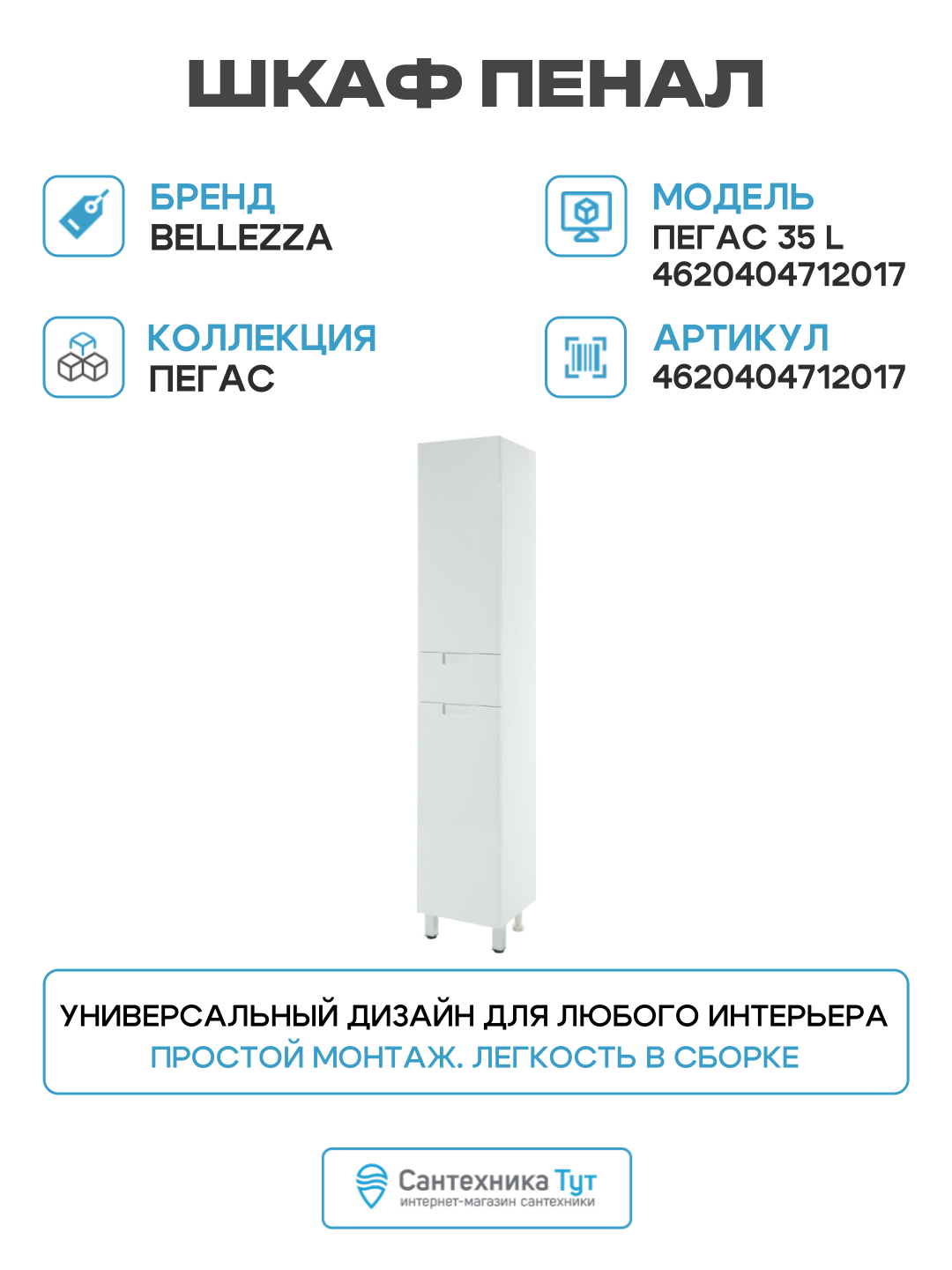 Шкаф-пенал Bellezza белый Пегас 35 L