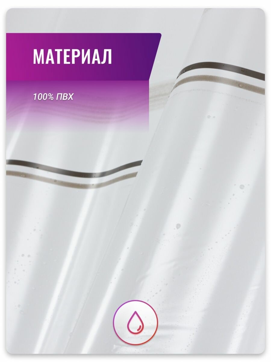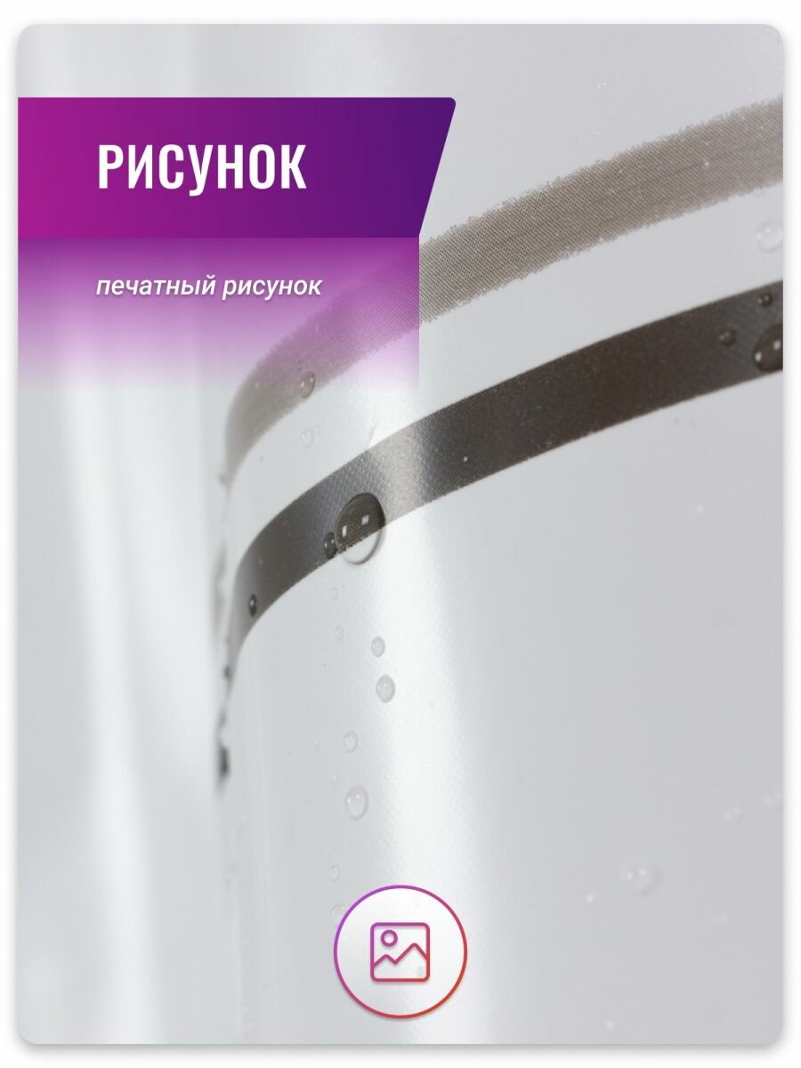 | Дополнительная информация | Штора для ванной комнаты с рисунком. Материал:100 % ПВХ. Влагонепроницаемая, легко моется, быстро сохнет. Кольца 12 шт. в комплекте. Допускается стирать вручную при температуре 30 градусов. |