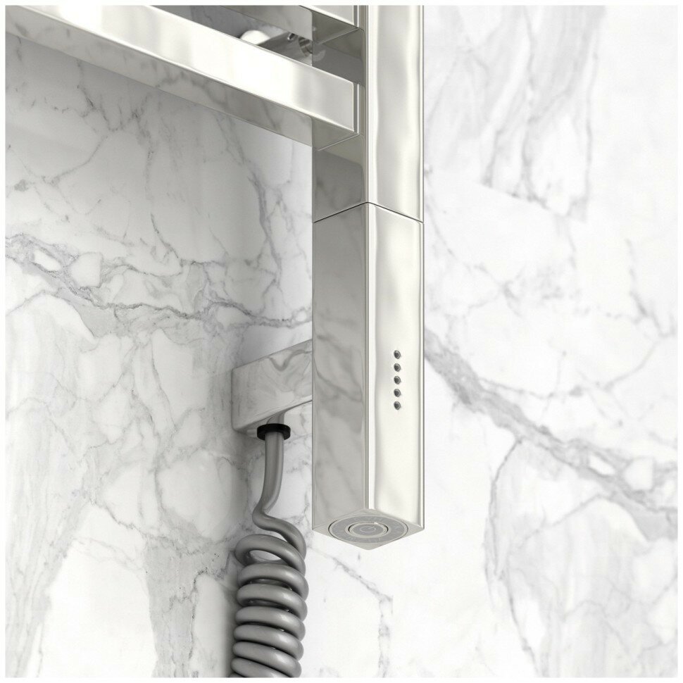 Модус 3.0 — электрический полотенцесушитель из нержавеющей стали, оснащённый многофункциональным блоком управления МЭМ Сунержа. Преимущество жидкостных моделей в том, что они обладают повышенной мощностью (до 300 Вт) и могут служить не только для сушки вещей, но и как полноценный прибор для обогрева большого помещения. МЭМ в этих моделях сконструирован так, что при достижении заданной температуры он отключается и по мере остывания включается и нагревается вновь. Благодаря такому режиму работы модуль помогает беречь электроэнергию. Режимы работы МЭМ - Голубой светодиод означает режим ожидания - Нажмите кнопку на МЭМ CUBE, чтобы модуль начал работу - Каждое следующее нажатие кнопки задаёт комфортную для вас температуру - Красные светодиоды не мигают и загораются по очереди в зависимости от заданного уровня температуры. - Если продолжить нажимать кнопку на МЭМ, то модуль переходит в режим таймера. В этом случае температура остаётся неизменной на уровне 60 °C. - Каждое последующее нажатие кнопки задаёт время, в течение которого прибор будет беспрерывно работать, вплоть до пяти часов включительно. - Мигающие красные светодиоды оповестят вас о количестве часов, которое осталось до автоматического выключения прибора.