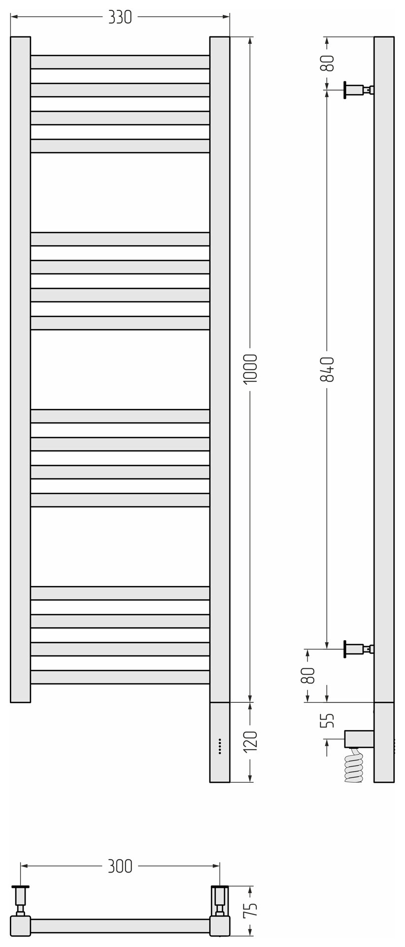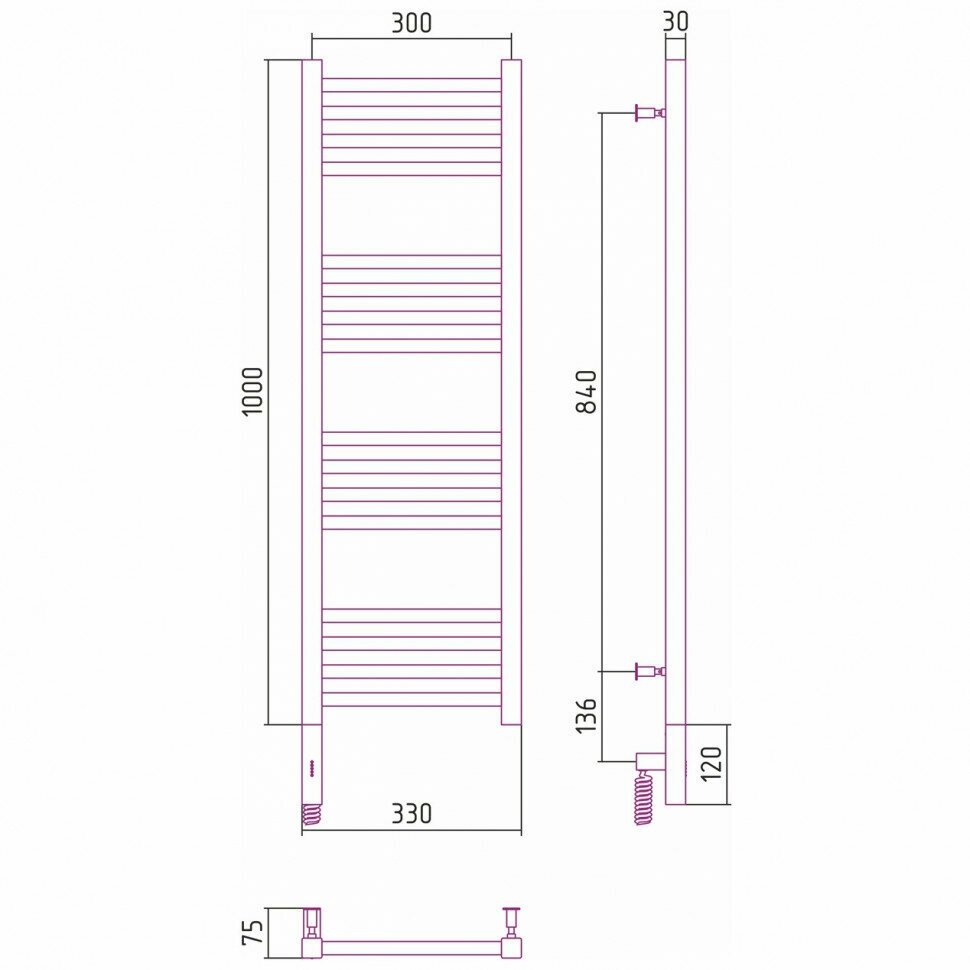 Полотенцесушитель электрический Сунержа Модус 3.0 100х30 R