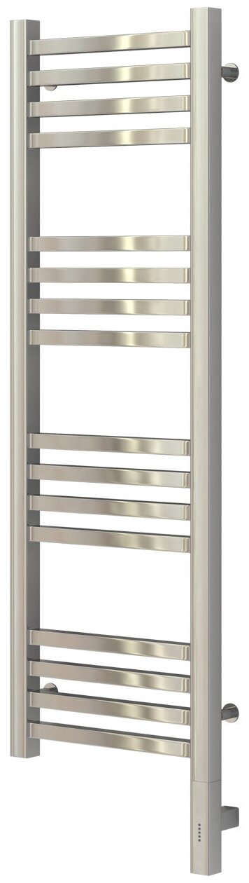 Модус 3.0 — электрический полотенцесушитель из нержавеющей стали, оснащённый многофункциональным блоком управления МЭМ Сунержа. Преимущество жидкостных моделей в том, что они обладают повышенной мощностью (до 300 Вт) и могут служить не только для сушки вещей, но и как полноценный прибор для обогрева большого помещения. МЭМ в этих моделях сконструирован так, что при достижении заданной температуры он отключается и по мере остывания включается и нагревается вновь. Благодаря такому режиму работы модуль помогает беречь электроэнергию. Режимы работы МЭМ - Голубой светодиод означает режим ожидания - Нажмите кнопку на МЭМ CUBE, чтобы модуль начал работу - Каждое следующее нажатие кнопки задаёт комфортную для вас температуру - Красные светодиоды не мигают и загораются по очереди в зависимости от заданного уровня температуры. - Если продолжить нажимать кнопку на МЭМ, то модуль переходит в режим таймера. В этом случае температура остаётся неизменной на уровне 60 °C. - Каждое последующее нажатие кнопки задаёт время, в течение которого прибор будет беспрерывно работать, вплоть до пяти часов включительно. - Мигающие красные светодиоды оповестят вас о количестве часов, которое осталось до автоматического выключения прибора.