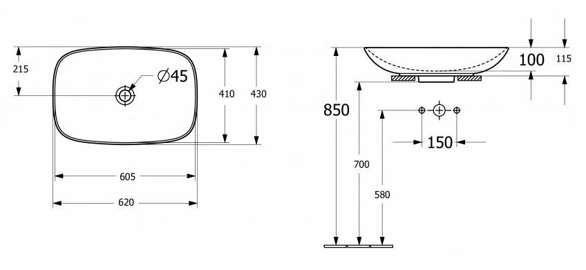 Array форма раковины Villeroy & Boch Loop & Friends оптимальных размеров: шириной 62 см, глубиной 42 см, высотой 12 см, способствует комфорту использования и монтажа. Современный стиль, в котором выполнена раковина Villeroy & Boch 4A500001 передается во всех элементах данной модели. Материалом, из которого произведена раковина 4A500001 является фарфор, данный материал отличается максимально гладкой поверхностью, и абсолютной гигиениченостью.
