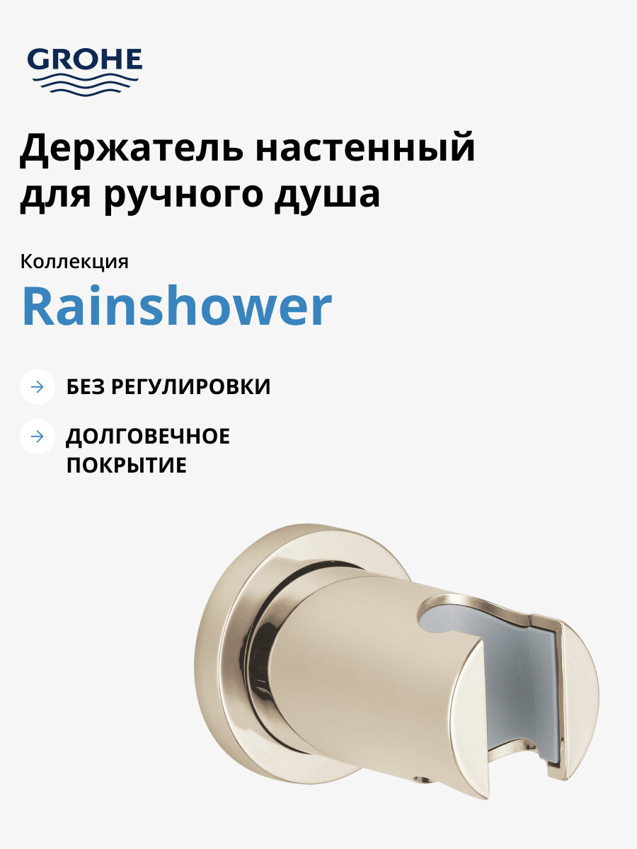 На сегодняшний день товар «Настенный держатель Grohe Rainshower для душа никель глянцевый 27074BE0» можно купить с кешбеком в 1 магазине: Яндекс.Маркет