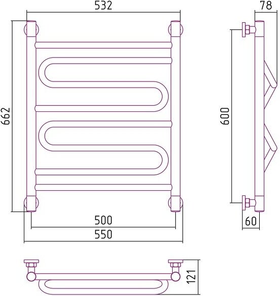 Полотенцесушитель водяной Сунержа 60x50 Элегия+