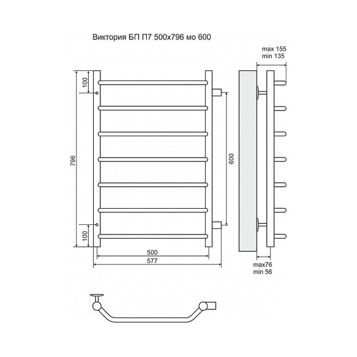 Модель «Виктория» с боковым подключением обладаем всеми качествами идеального полотенцесушителя: он отлично смотрится в ванной комнате, превосходно справляется со своими функциями и не доставляет трудностей в процессе монтажа и эксплуатации. Изделие имеет от 5 до 7 изогнутых перекладин, причем для моделей с большой высотой предусмотрена группировка по 2–3 штуки.
