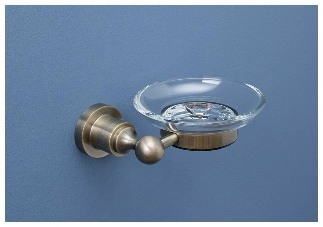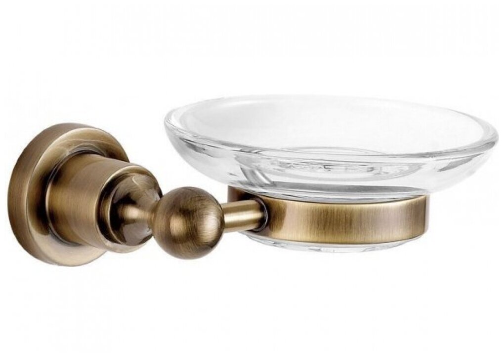 Мыльница для ванной Aquanet выполнена в ретро-стиле. Колорит изделию придает золотисто-медный оттенок латуни и живописные элементы декора. Одним из таких элементов служит оригинальной формы деталь, которая является одновременно креплением аксессуара к стене, в которой прячутся крепежи, с другой к ней присоединена деталь в форме кольца, в которую помещается круглая стеклянная чашечка для мыла. Лаконично и эффектно. Выполнено основание модели из латуни - сплава меди с цинком. Этот материал зарекомендовал себя как надежный и стойкий к коррозии, что для влажной среды особенно актуально.