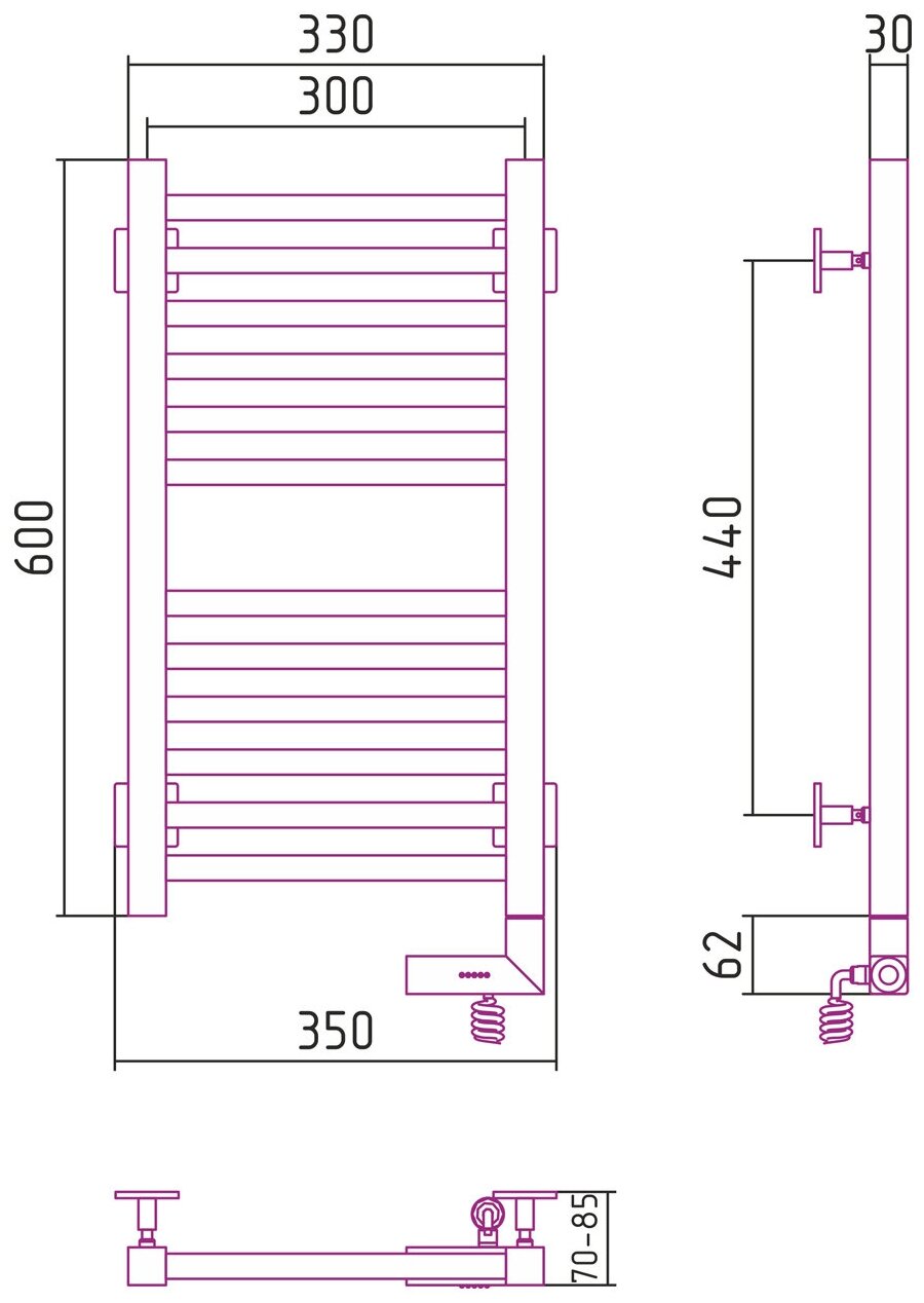 Полотенцесушитель электрический Сунержа Модус 2.0 60х30 R