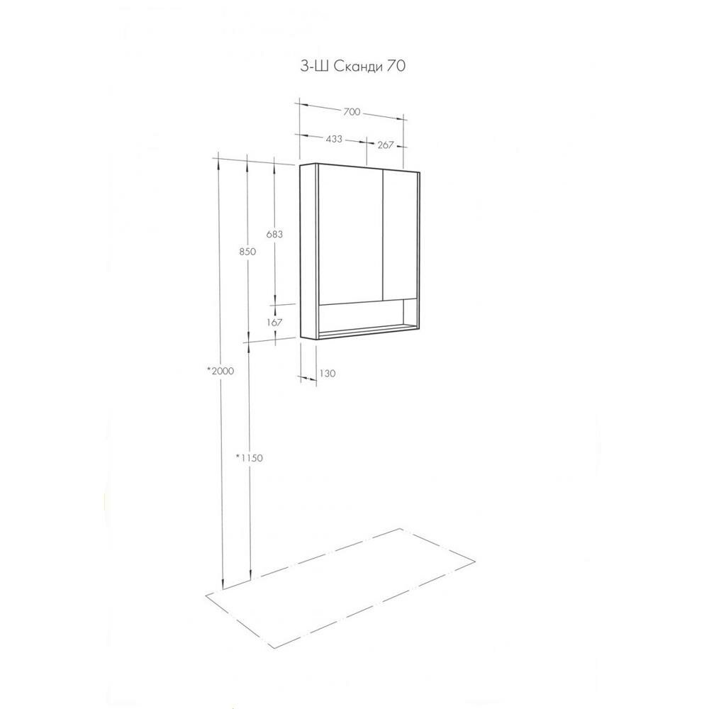 Зеркальный шкаф Aquaton 70 белый дуб верона 1A252202SDB20 Сканди