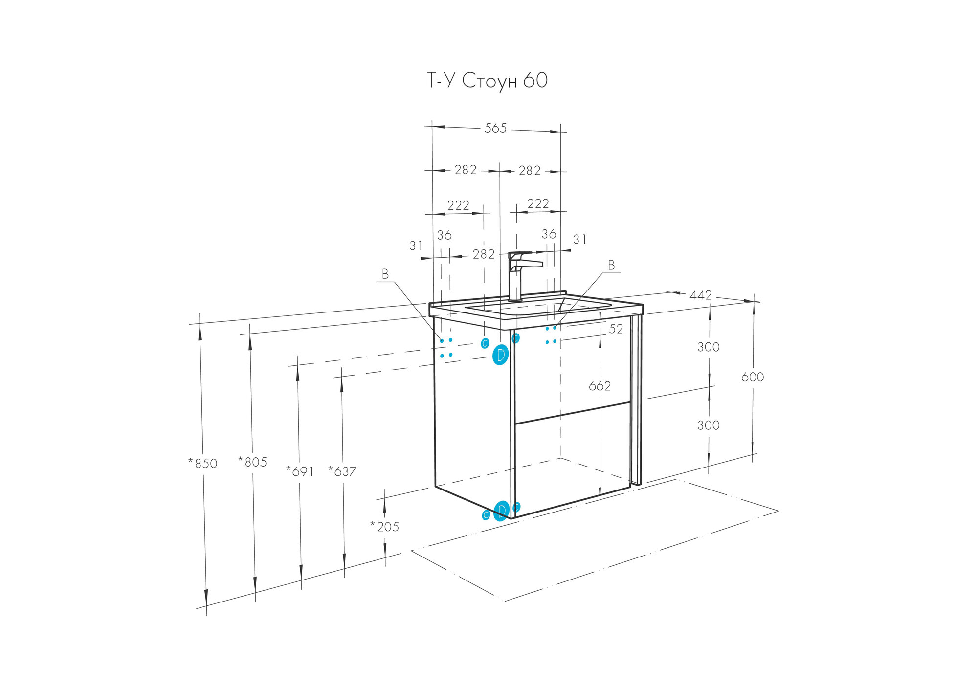 Тумба с раковиной Aquaton Стоун 60 1A231401SX850 60 см подвесная сосна арлингтон