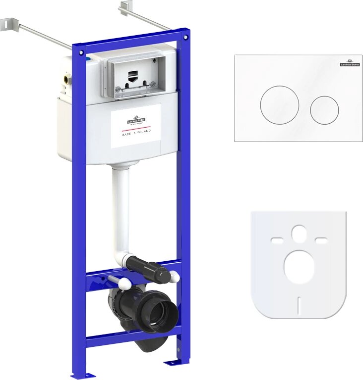 Инсталляция для унитаза Lavinia Boho Relfix 77020017. Единое инсталляционное решение для монтажа в любую типовую сантехническую шахту вне зависимости от расположения стояков, водопроводных труб и других инженерных коммуникаций. Инсталляционная система Lavinia Boho Relfix оснащена универсальным комплектом креплений, что позволяет производить не только стандартный прямой монтаж рамы к стене, но и в случае неровности стен осуществлять поворотный монтаж, вплоть до установки инсталляции в угол помещения. Бачок скрытого монтажа, корпус которого изготовлен из долговечного полимерного материала HDPE, является цельнолитым (бесшовным). Наливной и сливной механизмы сертифицированы как I класс по французскому стандарту NF, обеспечивают бесперебойную работу смыва и самый низкий уровень шума в своем классе - 8.5 Db. Все пластмассовые компоненты бачка изготавливаются посредством литья под давлением и прессом, что позволяет получать сложные, функциональные и долговечные элементы. Все соединительные элементы для подключения инсталляционной системы к трубопроводу изготовлены из латуни. Звукоизоляционная пластина для подвесной керамики позволит существенно снизить шум воды, сливаемой из бачка инсталляционной системы. Дополнительно, пластина станет амортизирующей прослойкой между керамикой и плиткой, защищая поверхности от повреждения. Шумоизоляция оснащена необходимыми универсальными монтажными отверстиями для легкой установки любой подвесной керамики. Ультратонкий монтаж клавиши смыва обеспечивает высокую эстетику, а также облегчает поддержание чистоты в туалете. Панель смыва минимально выступает за поверхность кафеля и относится к одним из самых тонких решений на рынке. Панель смыва впечатляет не только стильным дизайном, но и интегрированным антибактериальным покрытием SanitiZed, благодаря которому ограничивается рост и размножение бактерий на 99%. Ионы серебра не теряют свою активность даже после многих лет использования. Устойчивое покрытие панели смыва не смывается и не стирается со временем. Комплектация: система инсталляции; комплект крепления для скрытого подвесного монтажа; шумоизоляция для подвесной керамики; клавиша смыва (цвет белый, материал пластик); инструкция по монтажу и эксплуатации; гарантийный талон
