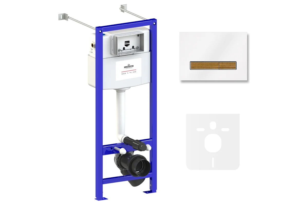 Инсталляция для унитаза Lavinia Boho Relfix 77020032. Единое инсталляционное решение для монтажа в любую типовую сантехническую шахту вне зависимости от расположения стояков, водопроводных труб и других инженерных коммуникаций. Инсталляционная система Lavinia Boho Relfix оснащена универсальным комплектом креплений, что позволяет производить не только стандартный прямой монтаж рамы к стене, но и в случае неровности стен осуществлять поворотный монтаж, вплоть до установки инсталляции в угол помещения. Бачок скрытого монтажа, корпус которого изготовлен из долговечного полимерного материала HDPE, является цельнолитым (бесшовным). Наливной и сливной механизмы сертифицированы как I класс по французскому стандарту NF, обеспечивают бесперебойную работу смыва и самый низкий уровень шума в своем классе - 8.5 Db. Все пластмассовые компоненты бачка изготавливаются посредством литья под давлением и прессом, что позволяет получать сложные, функциональные и долговечные элементы. Все соединительные элементы для подключения инсталляционной системы к трубопроводу изготовлены из латуни. Звукоизоляционная пластина для подвесной керамики позволит существенно снизить шум воды, сливаемой из бачка инсталляционной системы. Дополнительно, пластина станет амортизирующей прослойкой между керамикой и плиткой, защищая поверхности от повреждения. Шумоизоляция оснащена необходимыми универсальными монтажными отверстиями для легкой установки любой подвесной керамики. Ультратонкий монтаж клавиши смыва обеспечивает высокую эстетику, а также облегчает поддержание чистоты в туалете. Панель смыва минимально выступает за поверхность кафеля и относится к одним из самых тонких решений на рынке. Панель смыва впечатляет не только стильным дизайном, но и интегрированным антибактериальным покрытием SanitiZed, благодаря которому ограничивается рост и размножение бактерий на 99%. Ионы серебра не теряют свою активность даже после многих лет использования. Устойчивое покрытие панели смыва не смывается и не стирается со временем. Комплектация: система инсталляции; комплект крепления для скрытого подвесного монтажа; шумоизоляция для подвесной керамики; клавиша смыва (цвет черный-темное дерево, материал стекло); инструкция по монтажу и эксплуатации; гарантийный талон