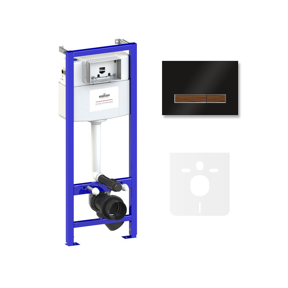 Инсталляция для унитаза Lavinia Boho Relfix 77010020. Единое инсталляционное решение для монтажа в любую типовую сантехническую шахту вне зависимости от расположения стояков, водопроводных труб и других инженерных коммуникаций. Инсталляционная система Lavinia Boho Relfix оснащена универсальным комплектом креплений, что позволяет производить не только стандартный прямой монтаж рамы к стене, но и в случае неровности стен осуществлять поворотный монтаж, вплоть до установки инсталляции в угол помещения. Бачок скрытого монтажа, корпус которого изготовлен из долговечного полимерного материала HDPE, является цельнолитым (бесшовным). Наливной и сливной механизмы сертифицированы как I класс по французскому стандарту NF, обеспечивают бесперебойную работу смыва и самый низкий уровень шума в своем классе - 8.5 Db. Все пластмассовые компоненты бачка изготавливаются посредством литья под давлением и прессом, что позволяет получать сложные, функциональные и долговечные элементы. Все соединительные элементы для подключения инсталляционной системы к трубопроводу изготовлены из латуни. Звукоизоляционная пластина для подвесной керамики позволит существенно снизить шум воды, сливаемой из бачка инсталляционной системы. Дополнительно, пластина станет амортизирующей прослойкой между керамикой и плиткой, защищая поверхности от повреждения. Шумоизоляция оснащена необходимыми универсальными монтажными отверстиями для легкой установки любой подвесной керамики. Ультратонкий монтаж клавиши смыва обеспечивает высокую эстетику, а также облегчает поддержание чистоты в туалете. Панель смыва минимально выступает за поверхность кафеля и относится к одним из самых тонких решений на рынке. Панель смыва впечатляет не только стильным дизайном, но и интегрированным антибактериальным покрытием SanitiZed, благодаря которому ограничивается рост и размножение бактерий на 99%. Ионы серебра не теряют свою активность даже после многих лет использования. Устойчивое покрытие панели смыва не смывается и не стирается со временем. Комплектация: система инсталляции; комплект крепления для скрытого подвесного монтажа; шумоизоляция для подвесной керамики; клавиша смыва (цвет черный-темное дерево, материал стекло); инструкция по монтажу и эксплуатации; гарантийный талон