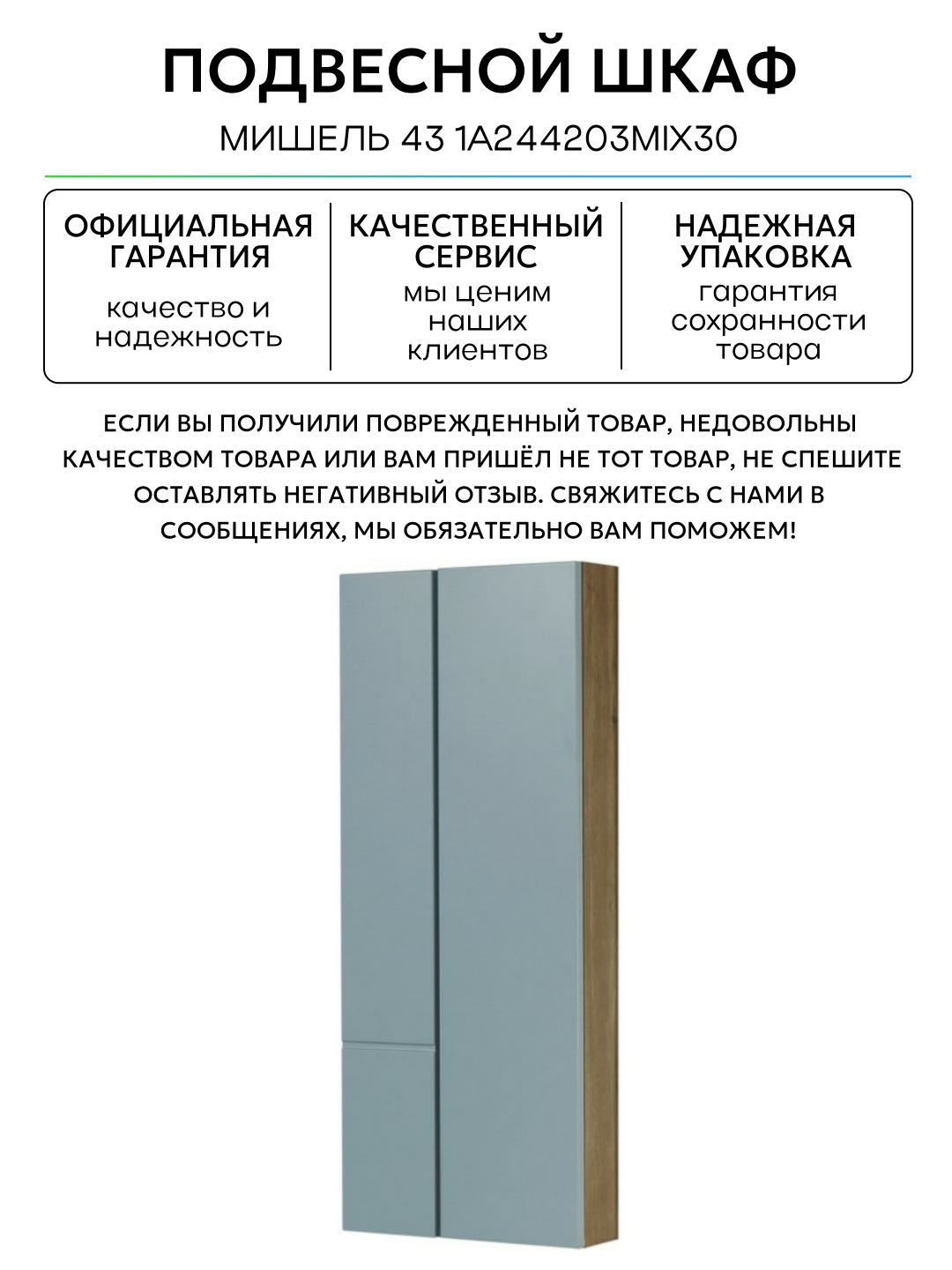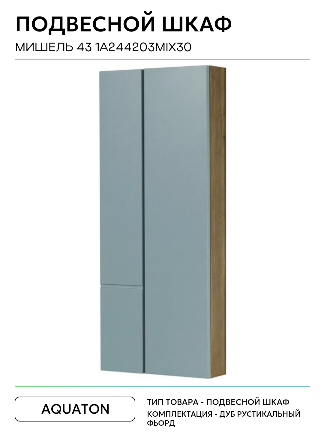 Подвесной шкаф Aquaton Мишель 43 1A244203MIX30 дуб рустикальный/фьорд