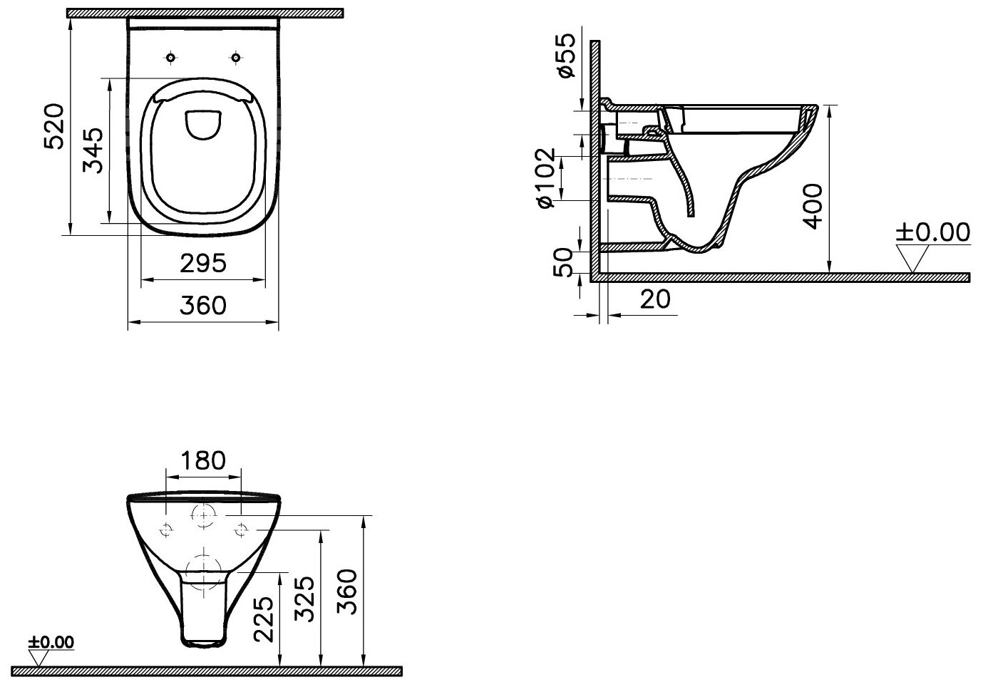 - Покрытие: антибактериальная глазурь VitrA Hygiene.