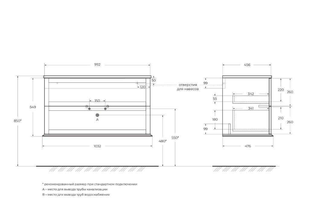- Габариты корпуса тумбы (ШхВхГ): 1032х549х476 мм.