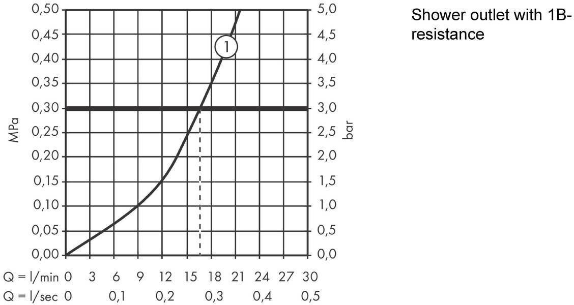 - Максимальный расход воды при 3 бар: 17 л/мин.