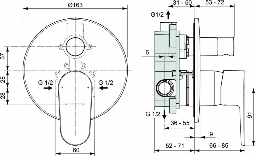 - Механизм: керамический картридж 47 мм с функцией HWTC (ограничение максимальной температуры горячей воды).