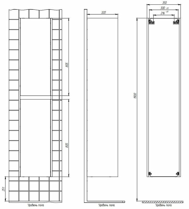 - Размер (ШхВхГ): 350х1650х320 мм.
