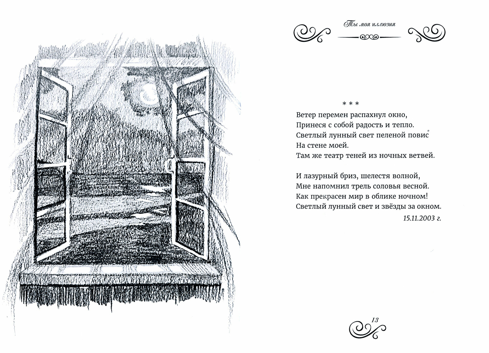 Перед вами сборник стихов о любви. В начале речь пойдёт о юношеской влюблённости и неопределённости. Затем чувства приходят в период покоя и равновесия. Ближе к концу сборника появляются стихи о том, что любовь оказалась иллюзией, а в конце книги о потере близкого человека, о том, что не нужно терять драгоценное время, нужно жить здесь и сейчас. Как часто мы - женщины - придумываем себе образ любимого, а потом в нём разочаровываемся. Книга рассчитана на неискушённого читателя, она будет интересна девушкам от шестнадцати лет и молодым женщинам.
