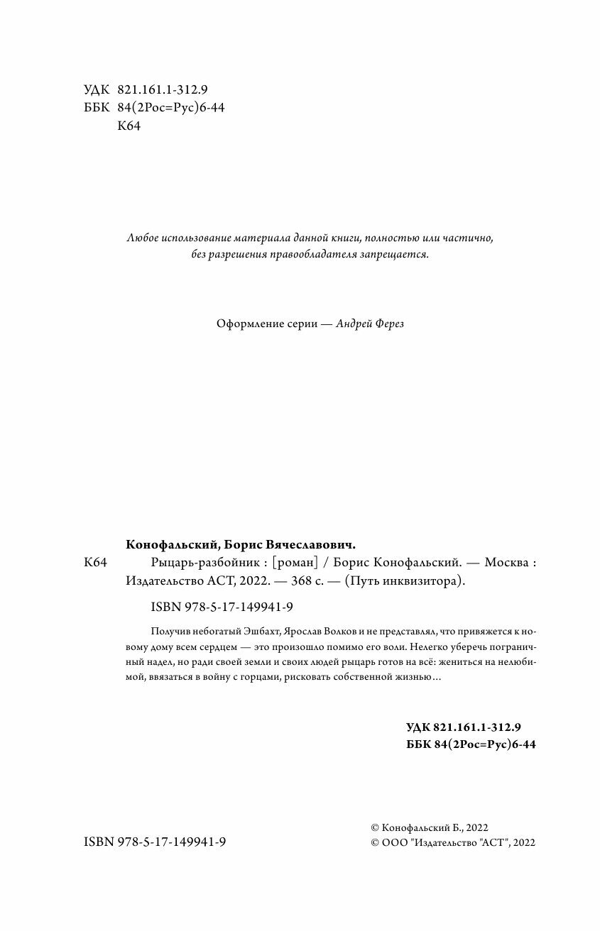 Книга: Рыцарь-разбойник (Конофальский Борис Вячеславович); ООО "Издательство Астрель", 2022