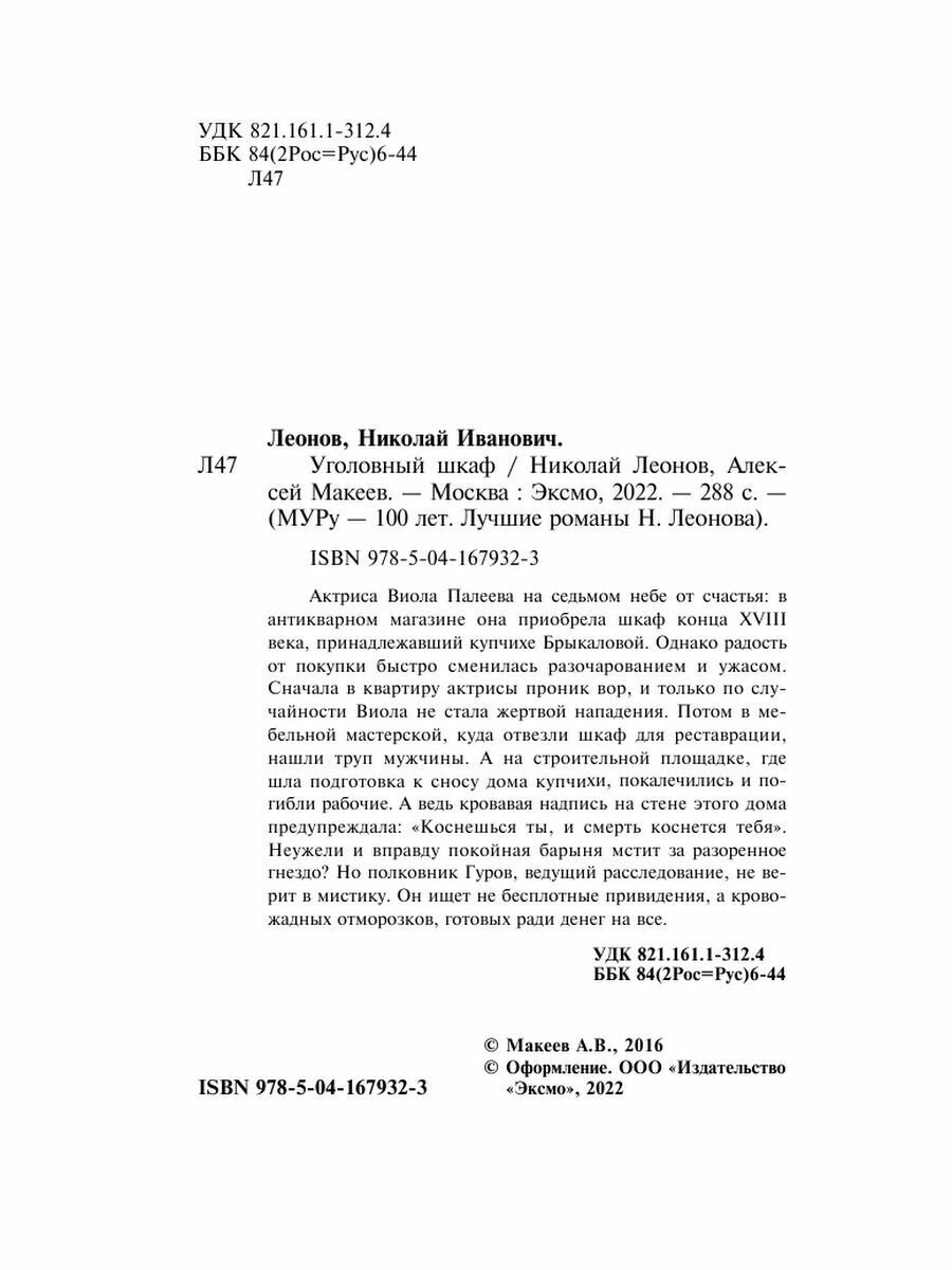 Книга: Уголовный шкаф (Леонов Николай Иванович, Макеев Алексей Викторович); ООО "Издательство "Эксмо", 2022