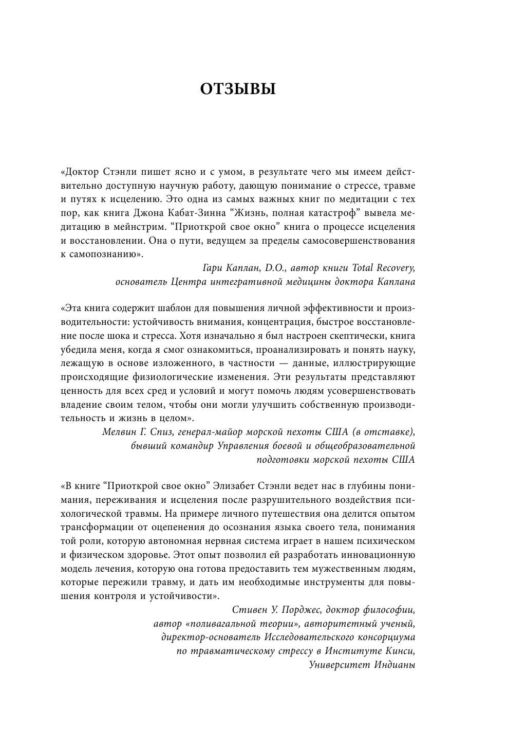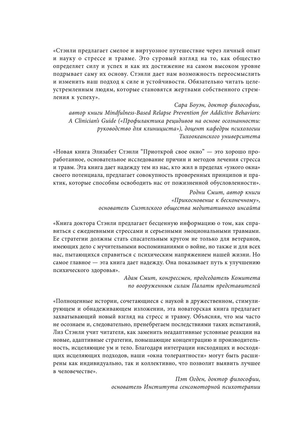 Справиться с продолжительным стрессом и психологической травмой очень тяжело. Они преследуют человека долгое время, мешая жить спокойно и счастливо. Доктор Элизабет А. Стэнли сама столкнулась с ПТСР. Она искала способ, как исцелиться, и создала свою программу лечения, которая помогла тысячам ветеранам военных действий и людям, побывавшим в тяжелых стрессовых ситуациях.