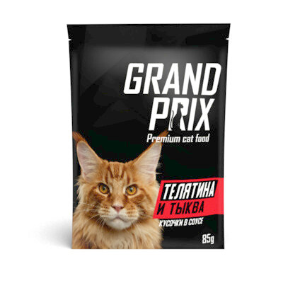 Нежные кусочки телятины и тыквы в аппетитном соусе — не только деликатес, но и полезное сбалансированное питание для вашей кошки. Побалуйте вашего питомца разными вкусами из коллекции влажных и сухих кормов GRAND PRIX.