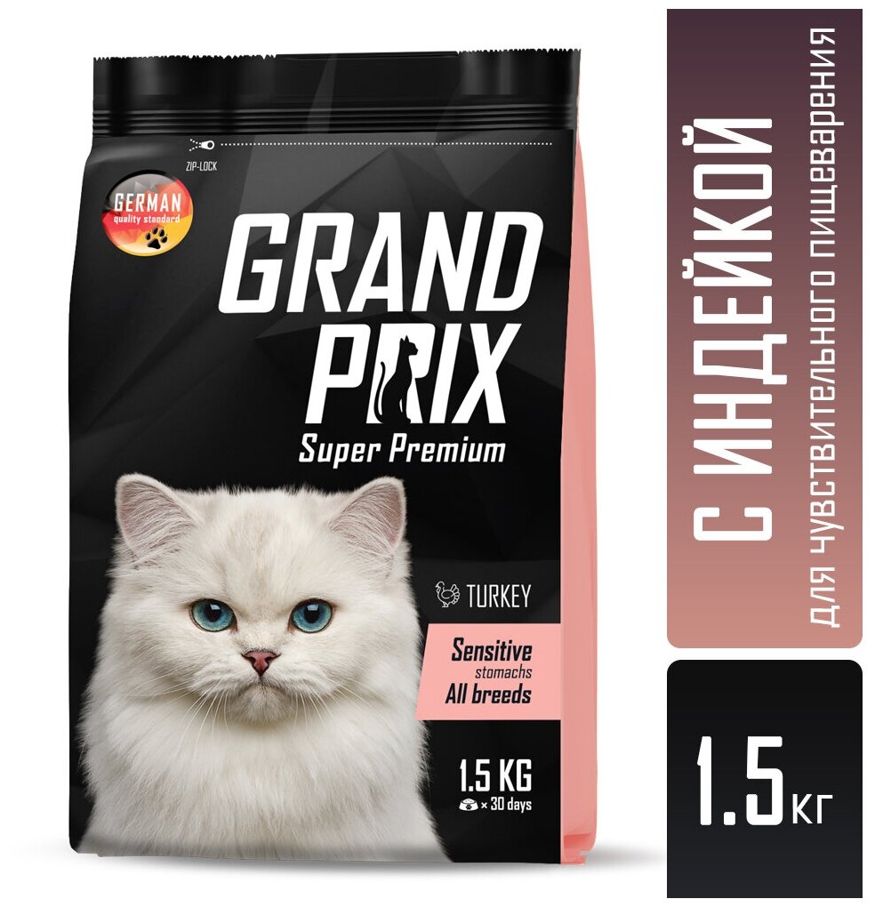 Сухой корм для кошек Grand Prix Sensitive с индейкой 1.5кг Корм сухой Grand Prix Sensitive Stomachs индейка для кошек с чувствительным пищеварением 1.5 кг