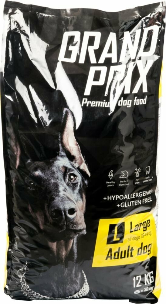 Корм GRAND PRIX Large Adult для взрослых собак крупных пород разработан на основе суточных потребностей собак в оптимальном наборе микроэлементов и витаминов. Корм богат клетчаткой из овощей и высококачественным белком благодаря повышенному содержанию мяса. Потребление сбалансированного корма GRAND PRIX снижает риск развития патологий нервной системы, способствует снижению уровня холестерина в крови, повышает иммунитет к вирусам и бактериям. Глюкозамин повышает выработку смазки суставов и способствует реставрации хрящей после нагрузок. Хондроитин предупреждает компрессию соединительной ткани суставов и увеличивает их подвижность. Незаменимые аминокислоты Омега-3 и Омега-6 обеспечивают профилактику патологий сердечно-сосудистой системы и своевременное обновление клеток эпителия, а витамин E способствует увлажнению липидного слоя кожи и улучшению качества шерсти.