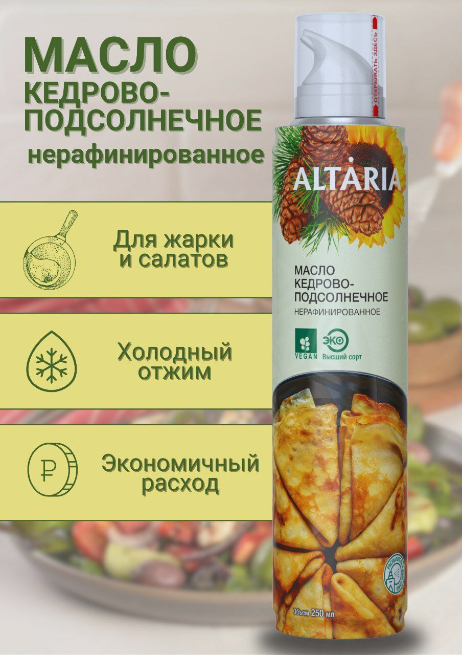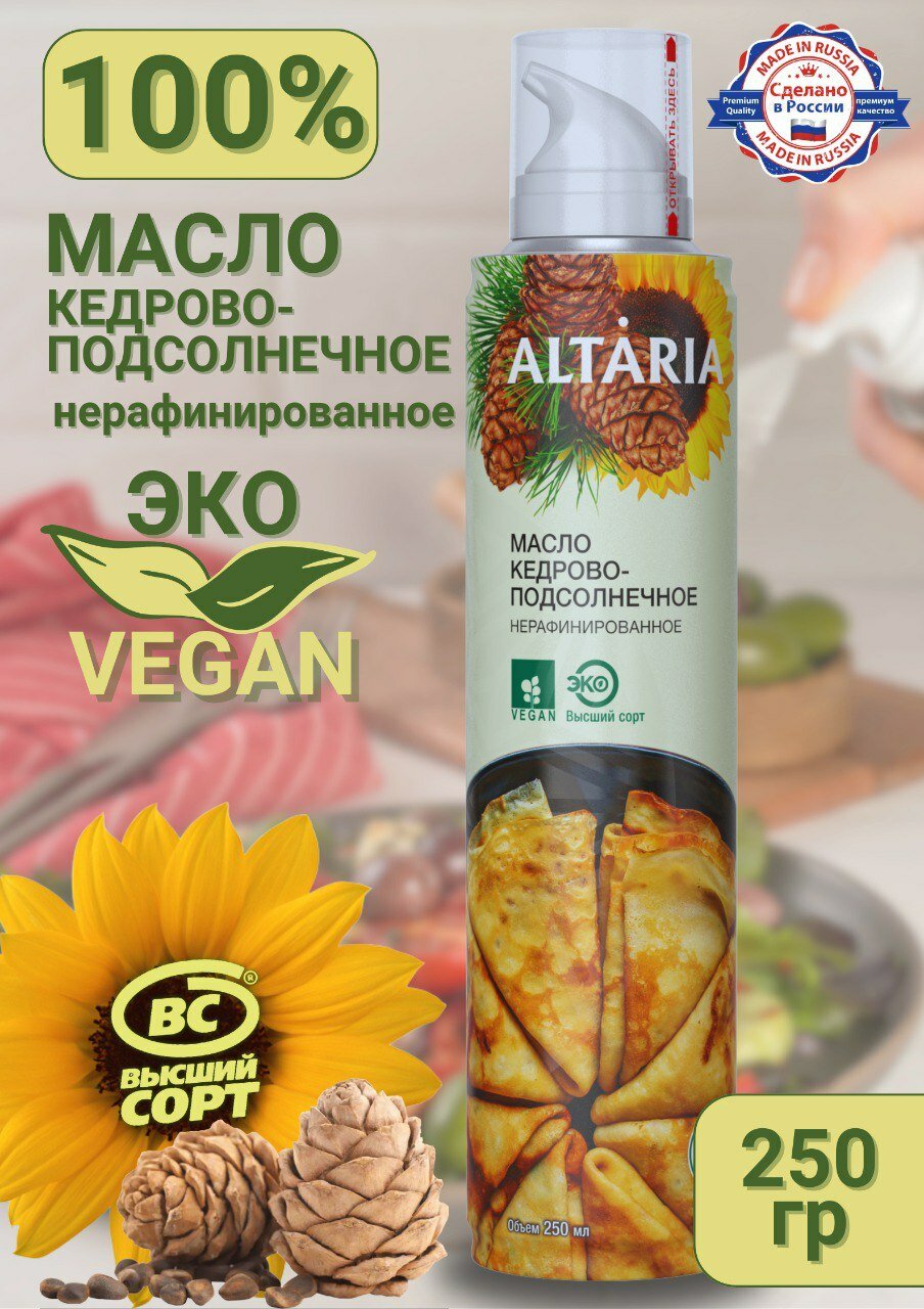 Масло Altaria кедровое подсолнечное нерафинированное 250мл