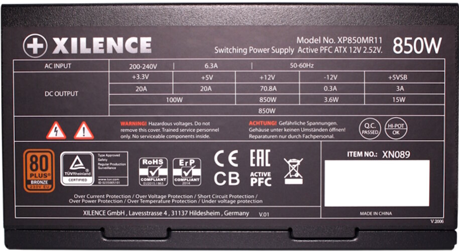 Блок питания ATX Xilence XN089 Performance A+ III 850W APFC 80+ Bronze 120mm fan semi-modular XP850MR11