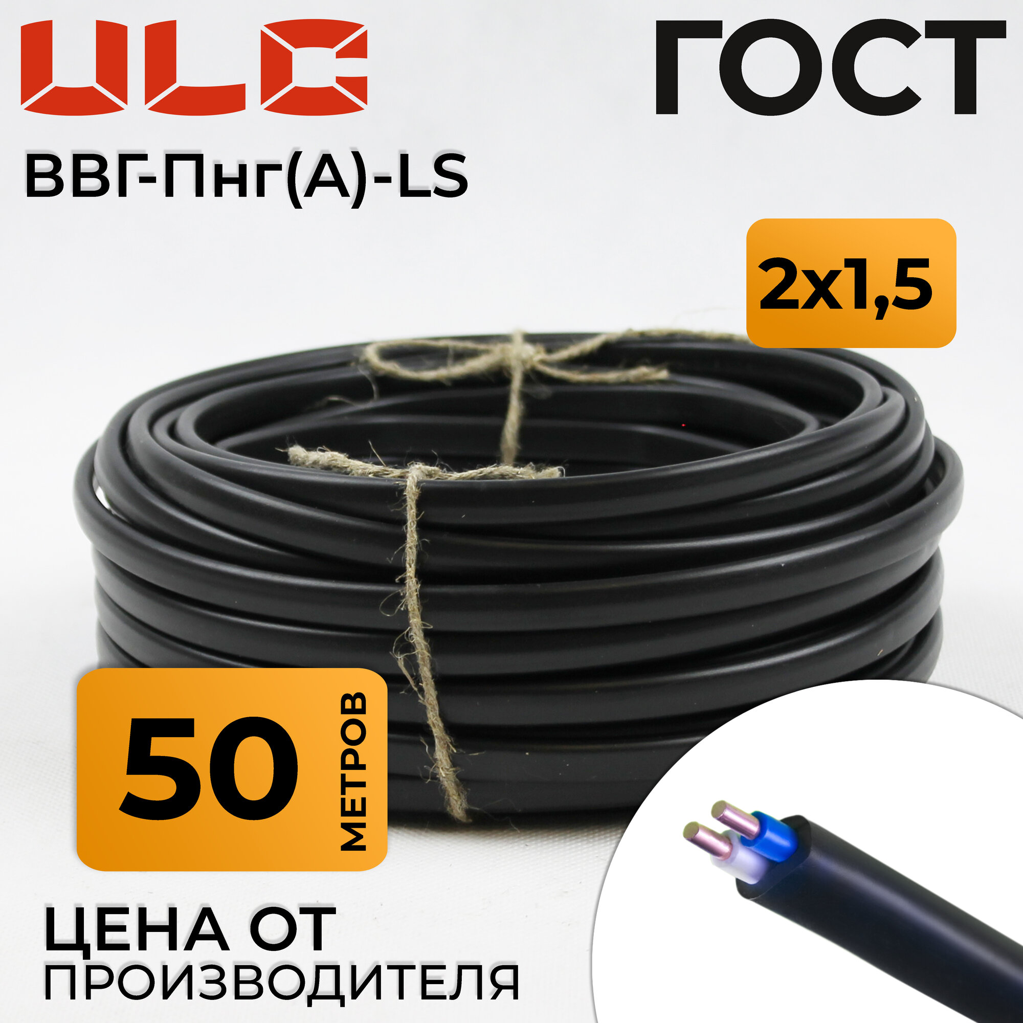 кабель электрический ввг-пнг(а)-ls 2х1.5 (50м) черный гост ulc (orelcable) ULС0051