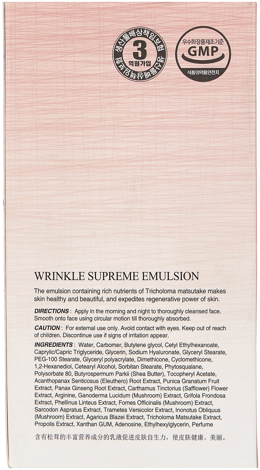 Питательная эмульсия разглаживающая морщины с женьшенем WRINKLE SUPREME, 130 мл. Экстракт женьшеня и 9 редких разновидностей грибов-антиоксидантов наполнят кожу необходимым питанием, надолго придадут ей эластичность и здоровый вид. Средство поможетснять с кожи стресс, вызванный вредными факторами окружающей среды. Кожа будет выглядеть более сияющей, живой, обновленной и разглаженной. Аденозин, известный своим антивозрастным действием, разгладит мелкие морщинки и сделает текстуру кожи гладкой.Средство очень мягкое и приятное в использовании.