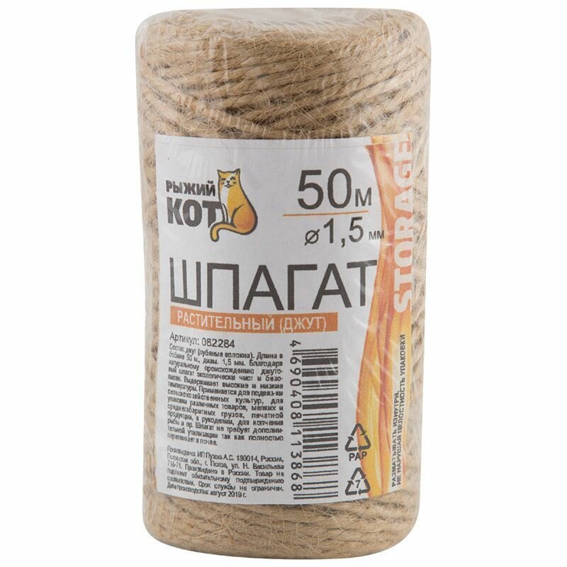 шпагат для подвязки растений 50м джут Рыжий кот (082284)