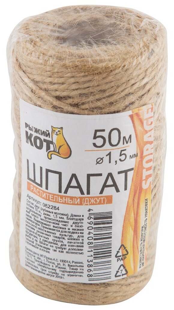 Сервис сравнения цен СкидкаГИД предлагает сравнить цены на товар «шпагат для подвязки растений 50м джут Рыжий кот (082284)»