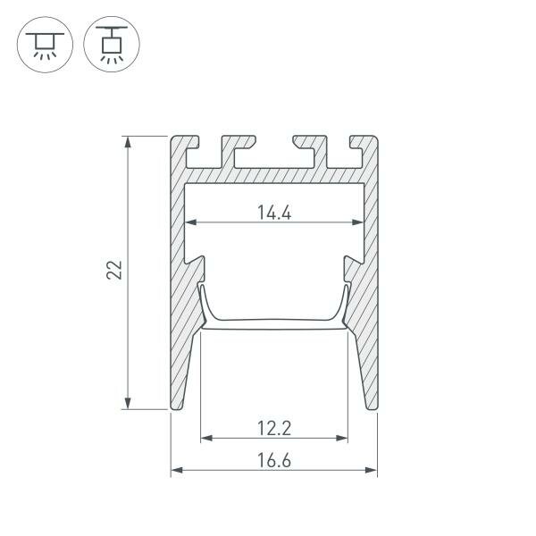 Накладной профиль из анодированного алюминия для основного освещения и контурной подсветки интерьера. Экран утоплен в плоскости профиля, что позволяет скрыть источник света от прямого контакта с глазами. Габаритные размеры профиля составляют 2000 мм в длину, 16,6 мм в ширину и 22 мм в высоту. Площадка для установки светодиодных лент позволяет использовать ленту шириной до 14,4 мм и мощностью до 20 Вт/м. Это обеспечивает гибкость в выборе светодиодных лент и создает потрясающие световые решения. Отличное решение для создания современных световых проектов.