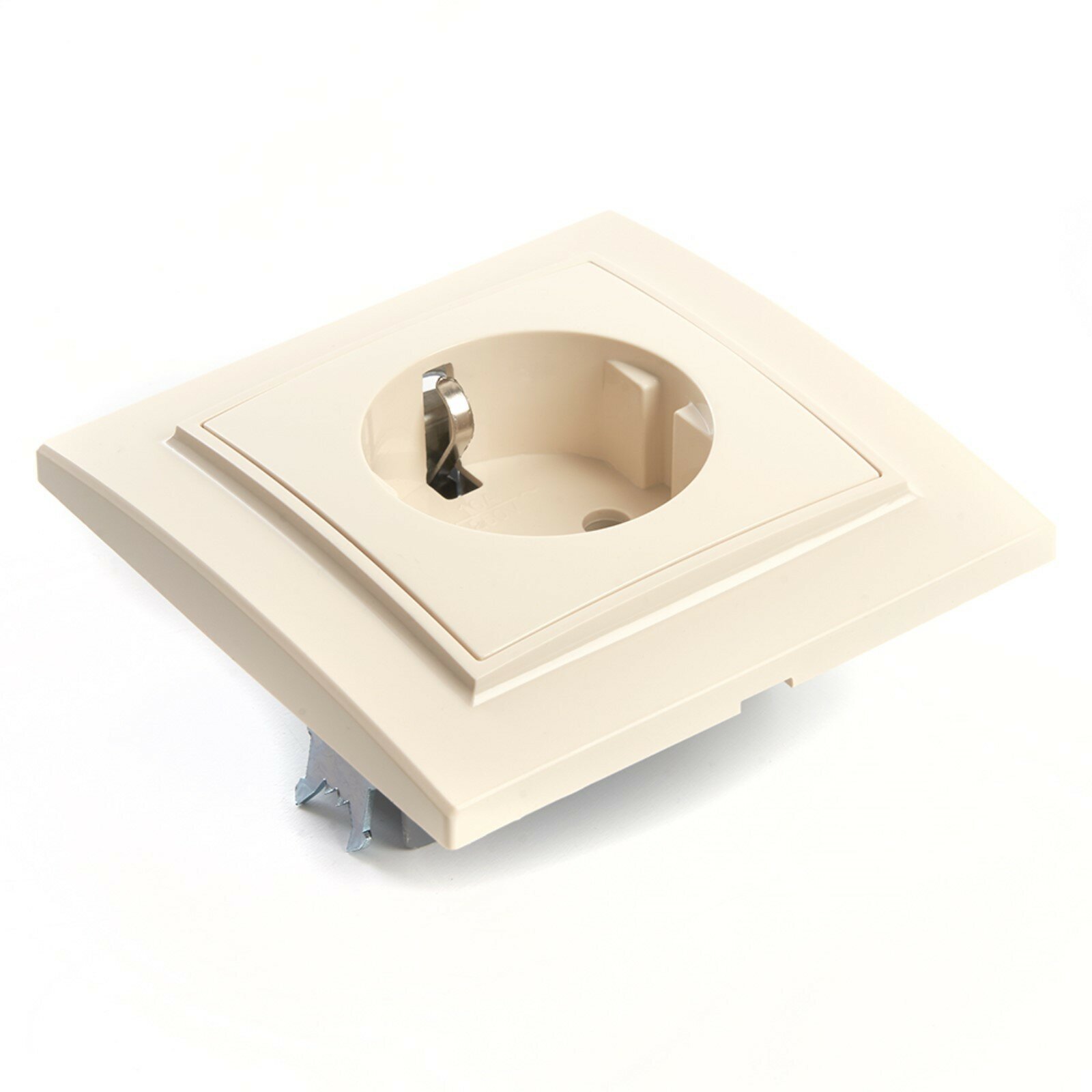 Розетка STEKKER PST16-9010-02 на 1 гнездо, с заземлением. Материал: ABS пластик/PP пластик , цвет слоновая кость, размер 84*84*40мм. Номинальное напряжение 250В, номинальный ток 16А, диапазон рабочих температур 0..+35°C, IP20
