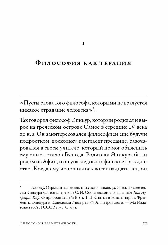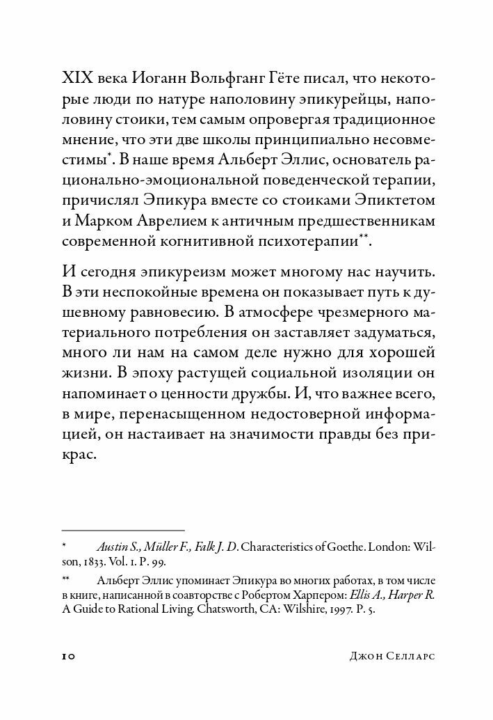 Если вы хотите получить общее впечатление об учении Эпикура - эта книга хороший выбор. Здесь, с одной стороны, развенчиваются распространенные мифы (например, об эпикурейцах пьяницах и безбожниках), с другой стороны, довольно подробно рассказывают о деталях учения (например, об иерархии наслаждений).