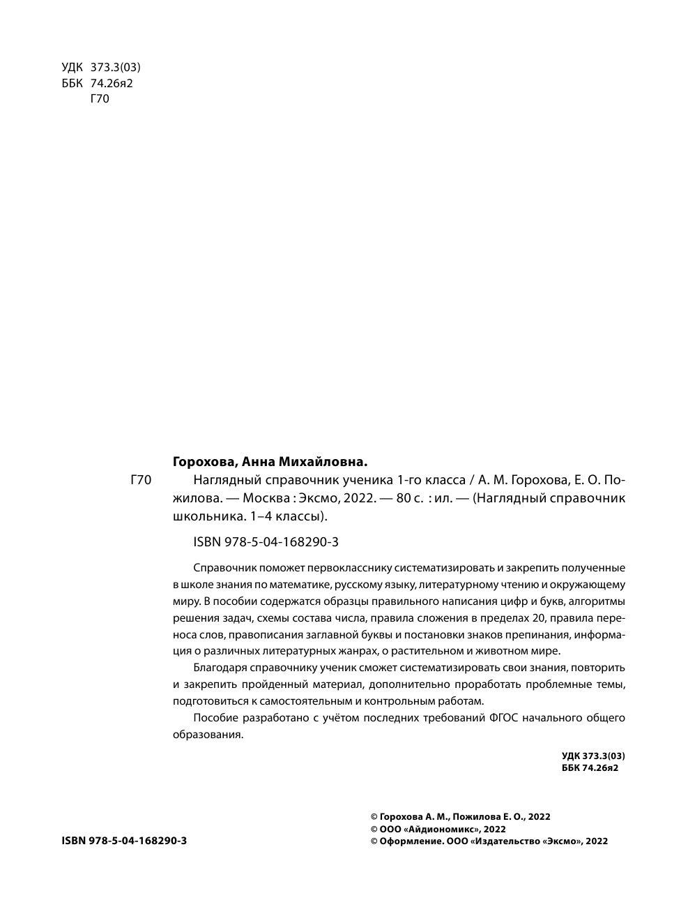 Наглядный справочник ученика 1-го класса (Горохова Анна Михайловна; Пожилова Елена Олеговна); Эксмо, Эксмодетство, 2022