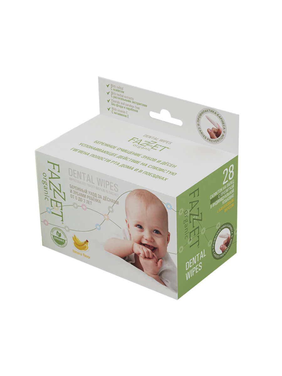 Cалфетки влажные детские для полости рта с ксилитом банановые Dental Wipes Fazzet 28шт Adwin Korea Corp (2253946)