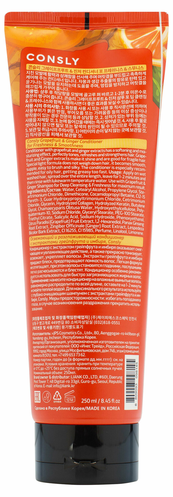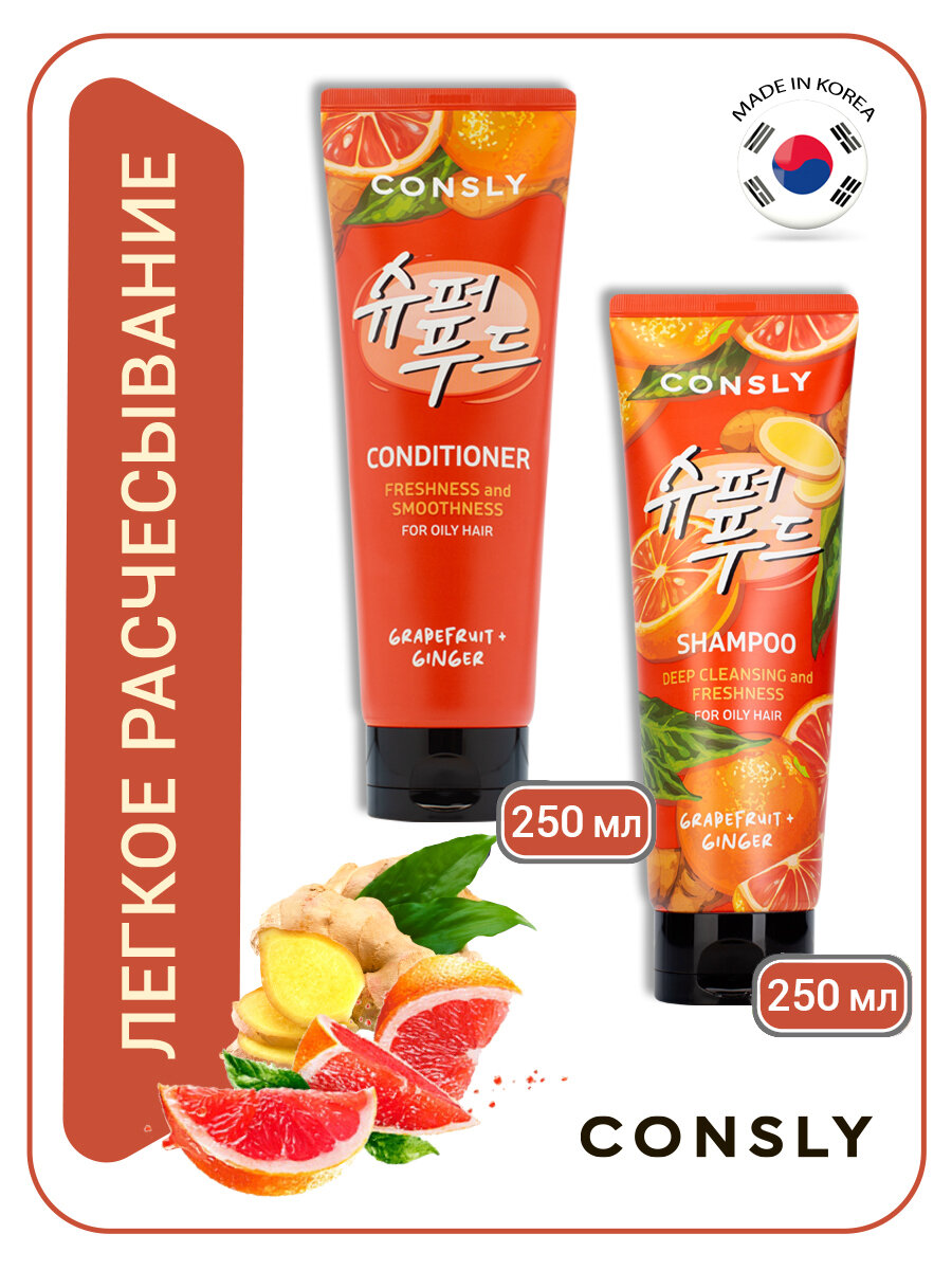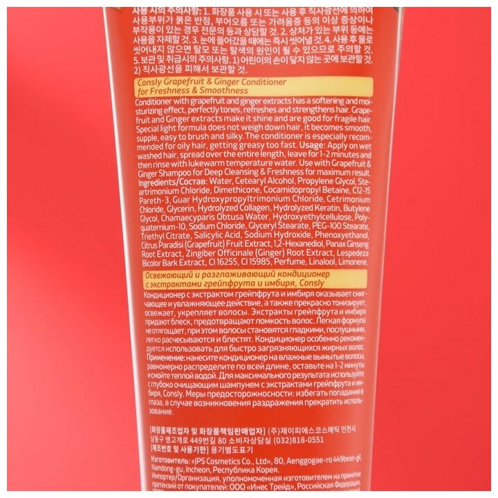 Кондиционер освежающий и разглаживающий с экстрактами грейпфрута и имбиря Consly 250мл JPS Cosmetics Co., Ltd (2276448)