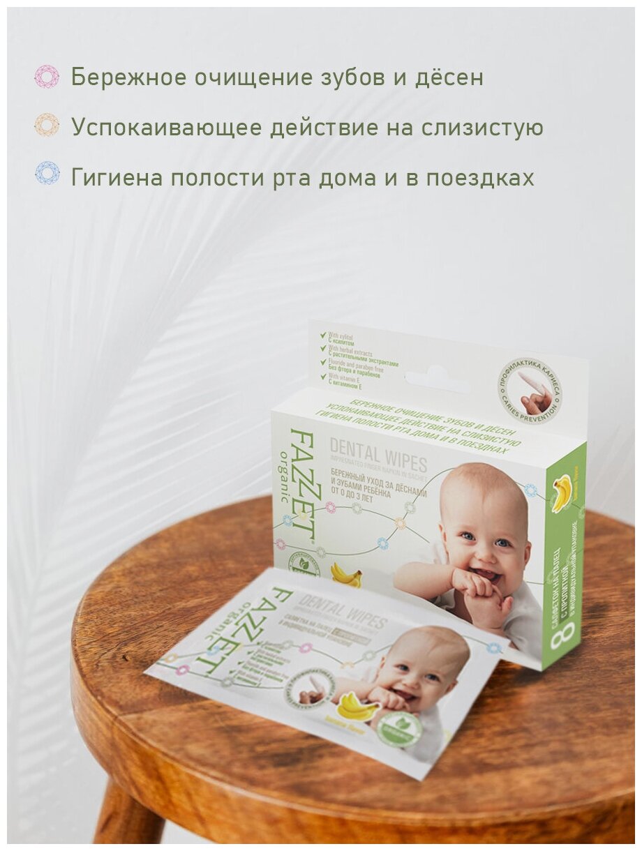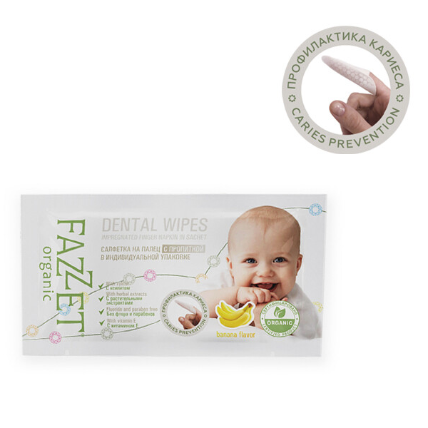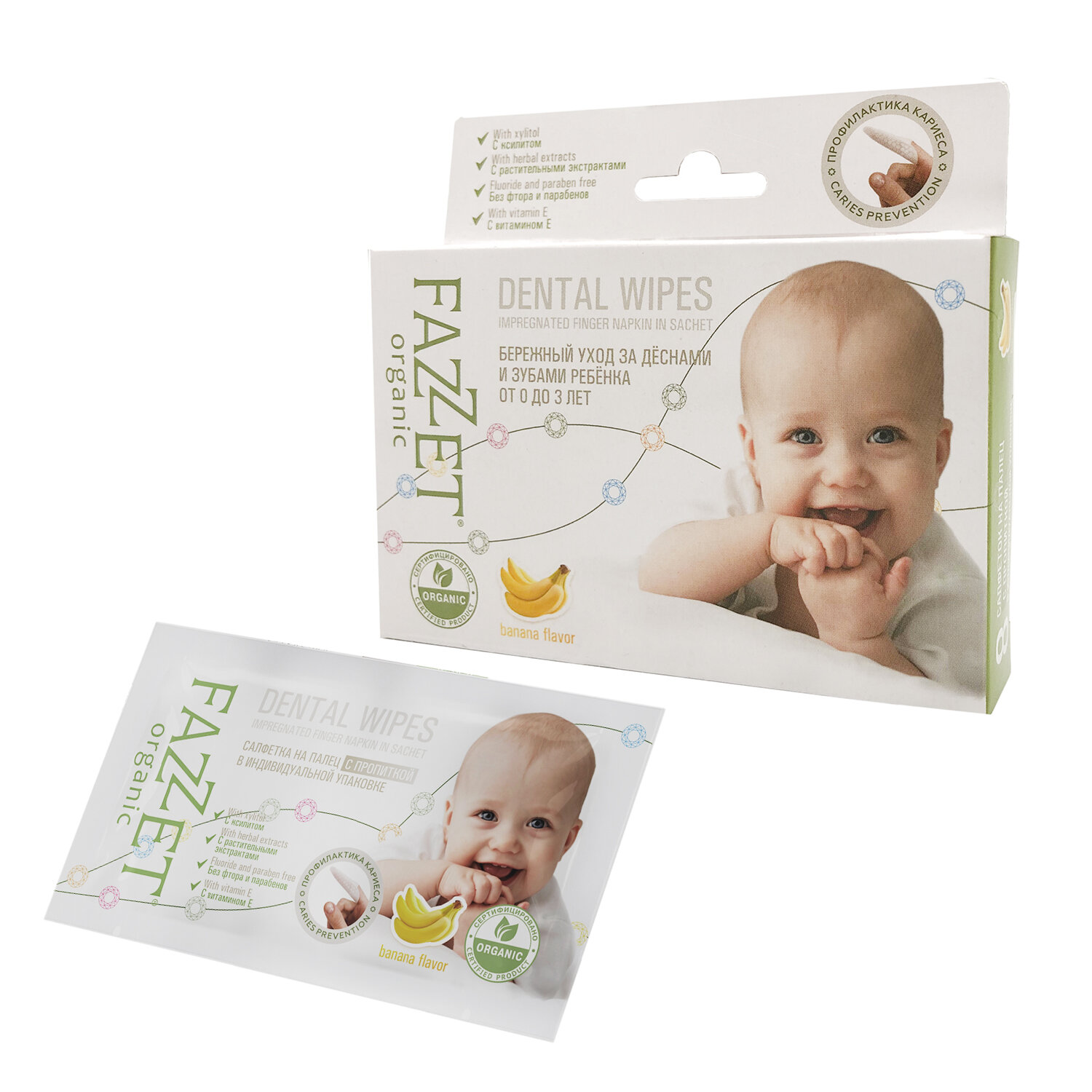 Cалфетки влажные детские для полости рта с ксилитом с 0 до 3 лет банановые Dental Wipes Fazzet 8шт Adwin Korea Corp (2253946)