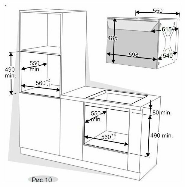 | Размеры ниши для встраивания (ВхШхГ) | 49х56х55 см |