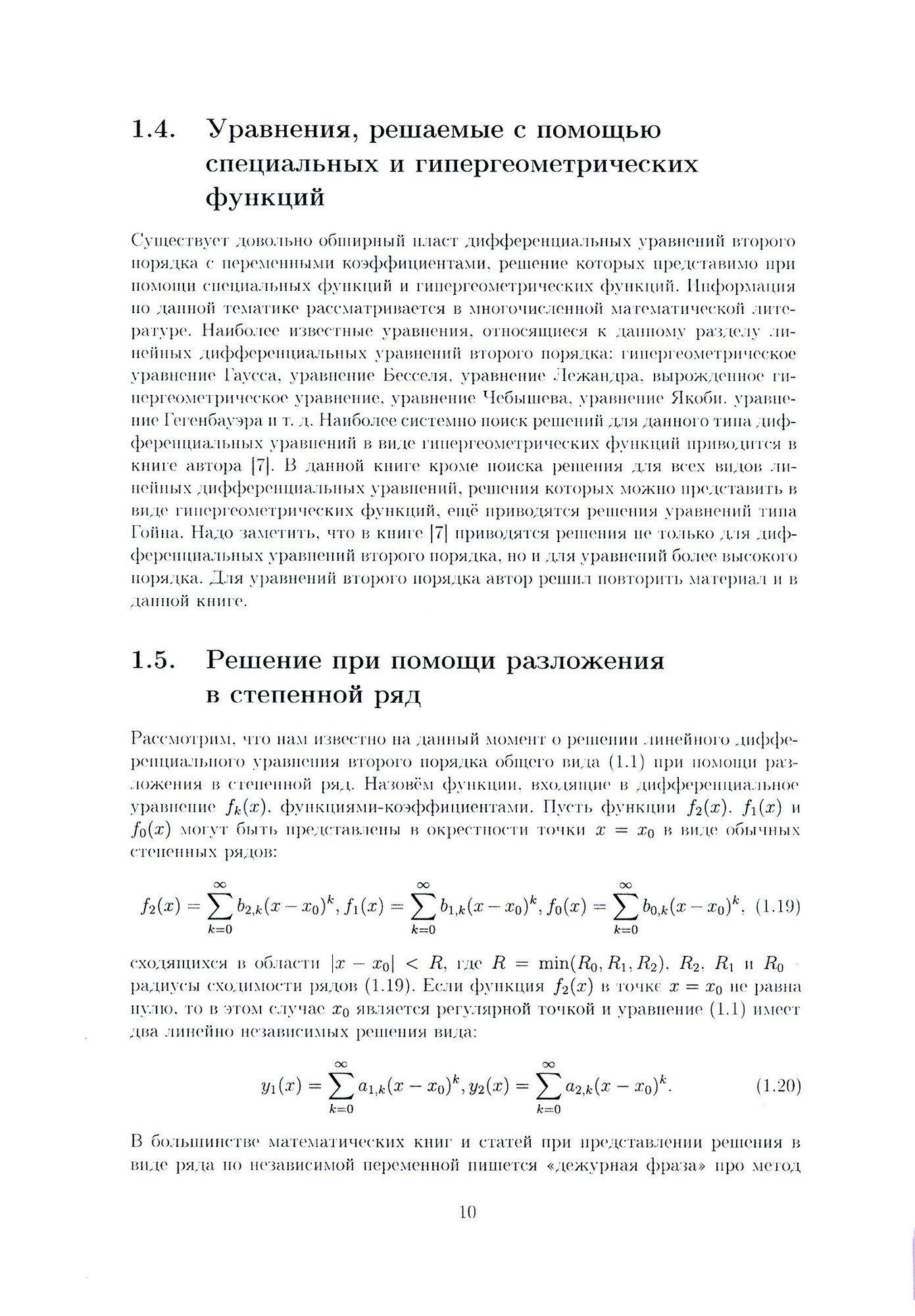 В рассматриваемой книге приведены методики решения дифференциальных уравнений второго порядка при помощи специальных и гипергеометрических функций, рассмотрены рекуррентные алгоритмы для аналитического решения в виде степенного ряда и подобраны многочисленные варианты решений в виде "точной формулы". Количество вариантов решаемых уравнений в виде "точной формулы" превосходит их количество во всех известных автору справочниках. Пособие содержит много задач для практического закрепления материала.