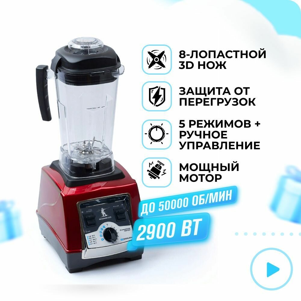 RAWMID Dream Samurai BDS-04 – это высокоскоростной профессиональный блендер для бытового и коммерческого использования. С его помощью Вы сможете приготовить бархатистые смузи идеально однородной консистенции, нежные кремовые супы, ореховые пасты, сорбеты из замороженных ягод и фруктов и много других вкусных полезных блюд.