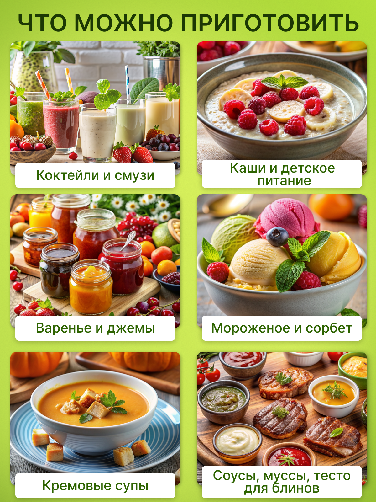 С блендером Дрим Гринери 2 вы будете делать домашние соусы, майонез, пасты для заправки салатов и супов, жидкое тесто для блинов и оладьев, сливочный крем для выпечки и многое другое.
