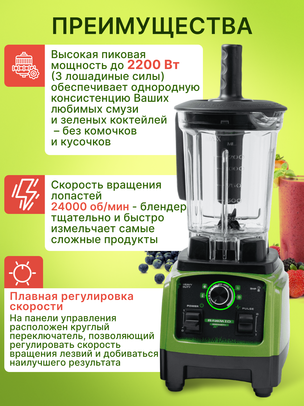 | Особенности | Разработан для зеленых коктейлей. Высококачественные подшипники, изготовленные в Японии. |