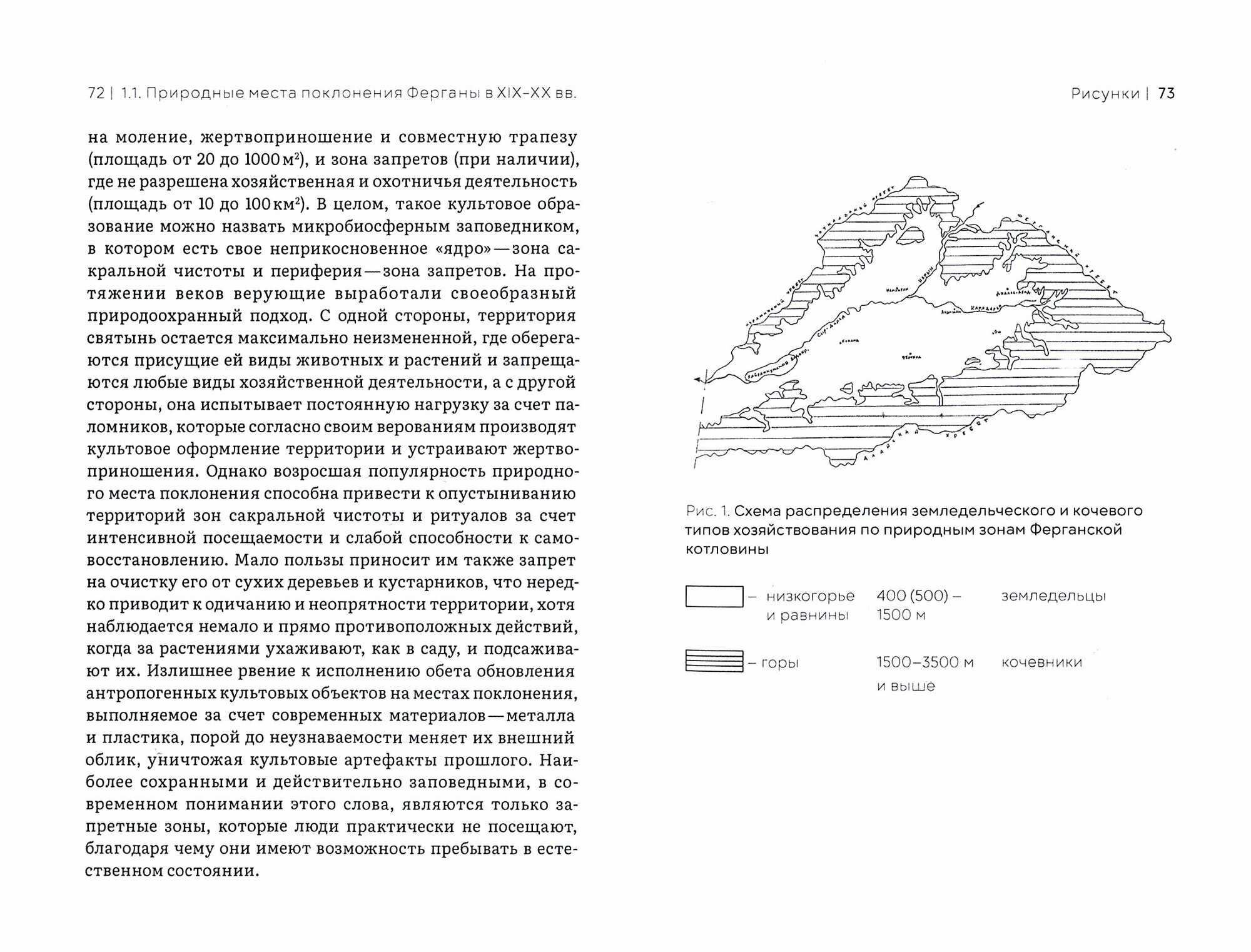 Монография "Святые места Ферганы" посвящена природным объектам поклонения, сохраняющимся в наши дни в быту населения Ферганской котловины (Средняя Азия). Святые места - неотъемлемая часть народного ислама, состоящего из этнических и региональных обычаев, скрытых под оболочкой религии вне официальной доктрины и практики. Древние домусульманские культы природы и предков под влиянием ислама трансформировались в культ мусульманских святых. В совокупности святые места представляют собой опорную сеть традиционной религиозной культуры с выраженной территориальной иерархией святынь, обладающих рядом жизнесберегающих функций: консолидирующей, медиаторной, коммуникативной, протекторной, лечебной и природоохранной.